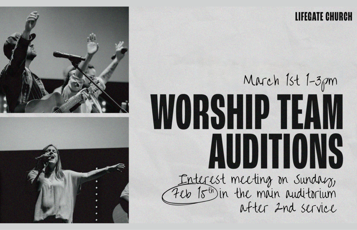 Do you sing or play an instrument? Do you love to use those gifts and talents to worship the Lord? Sign up to audition for the Lifegate worship team on Sunday, March 1st.