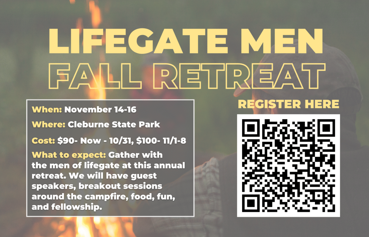 Join us for at Cleburne State Park for a weekend retreat full of fellowship, spiritual development and rest and renewal. Bring your fishing poles, kayaks, hiking shoes, and get out in nature! Sign-up for more details.